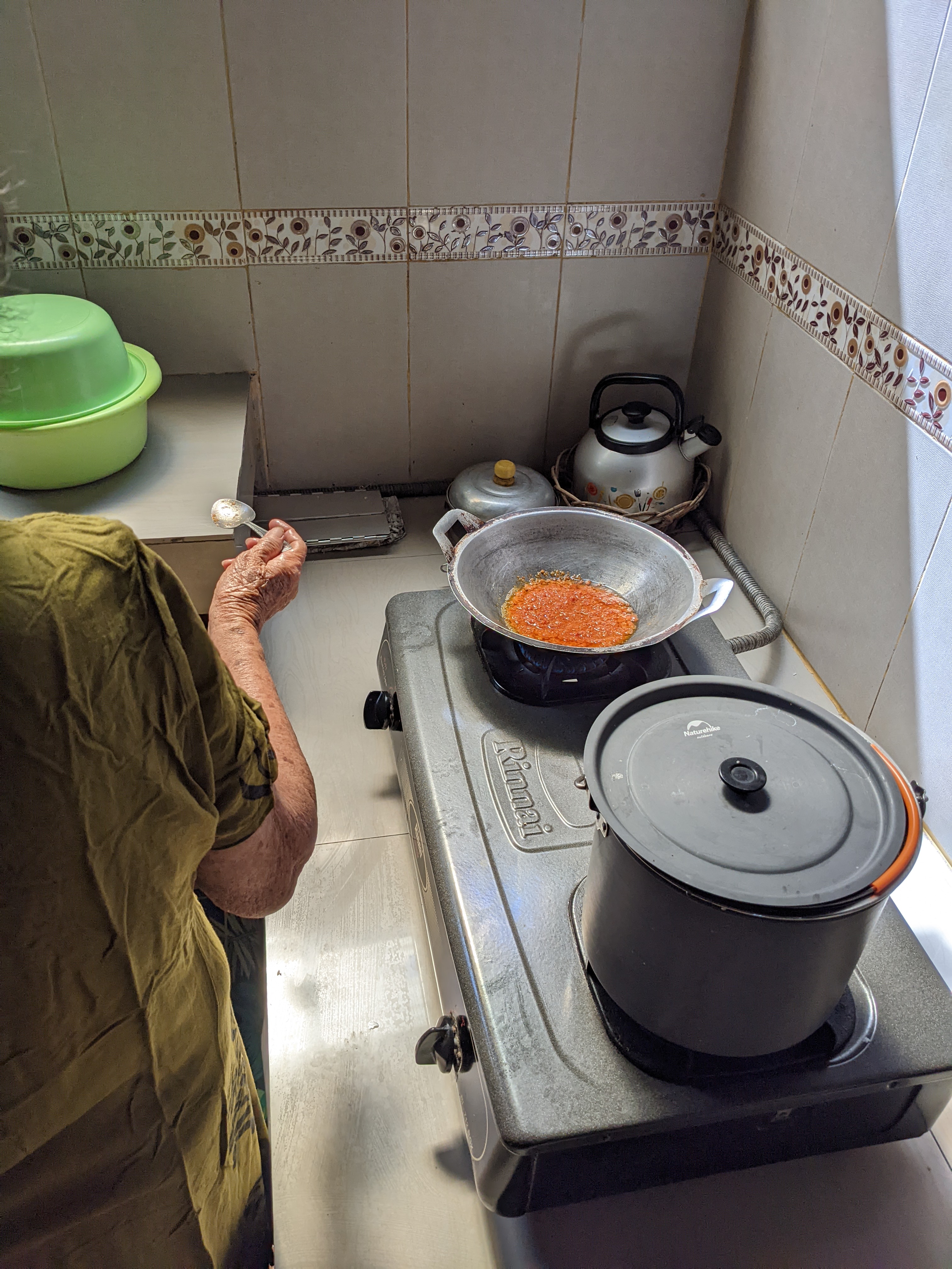 Une spécialité de l’Indonésie et de la Malaisie dont je n’ai pas parlé, c’est le sambal. C’est une préparation à base d’ail, d’oignons, de tomates et surtout de piments ! Eh oui les Indonésiens mangent pas mal pimenté mais ne font pas cuire le piment dans le plat principal, ce qui est toujours plus sympa si vous n’avez pas la même tolérance qu’eux.