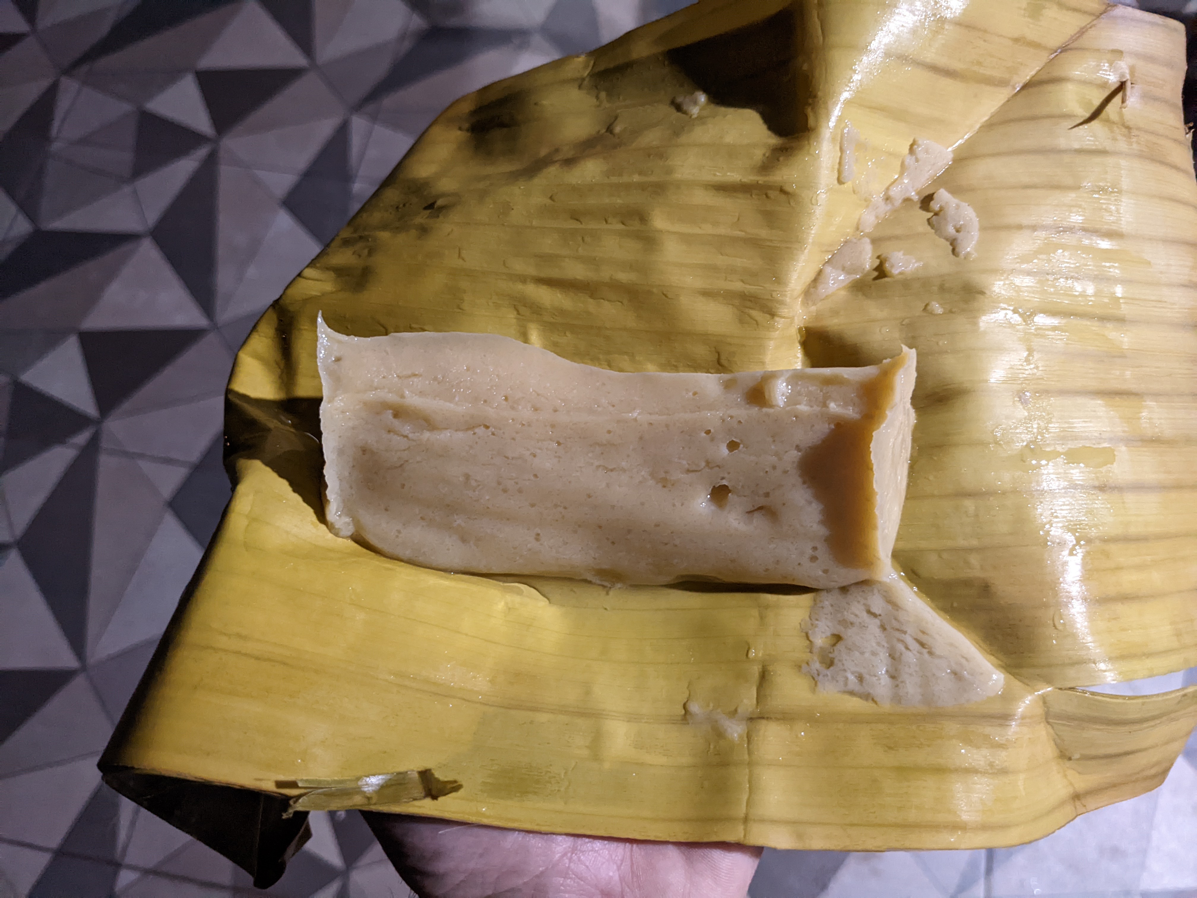 - Une sorte de snack au lait de coco (enfin je crois) emballé dans une feuille de bananier, comme beaucoup de choses en Asie du Sud-Est. Vraiment pas terrible et de loin le moins bon snack à la coco que j’ai pu goûter au fil de Mon Périple.