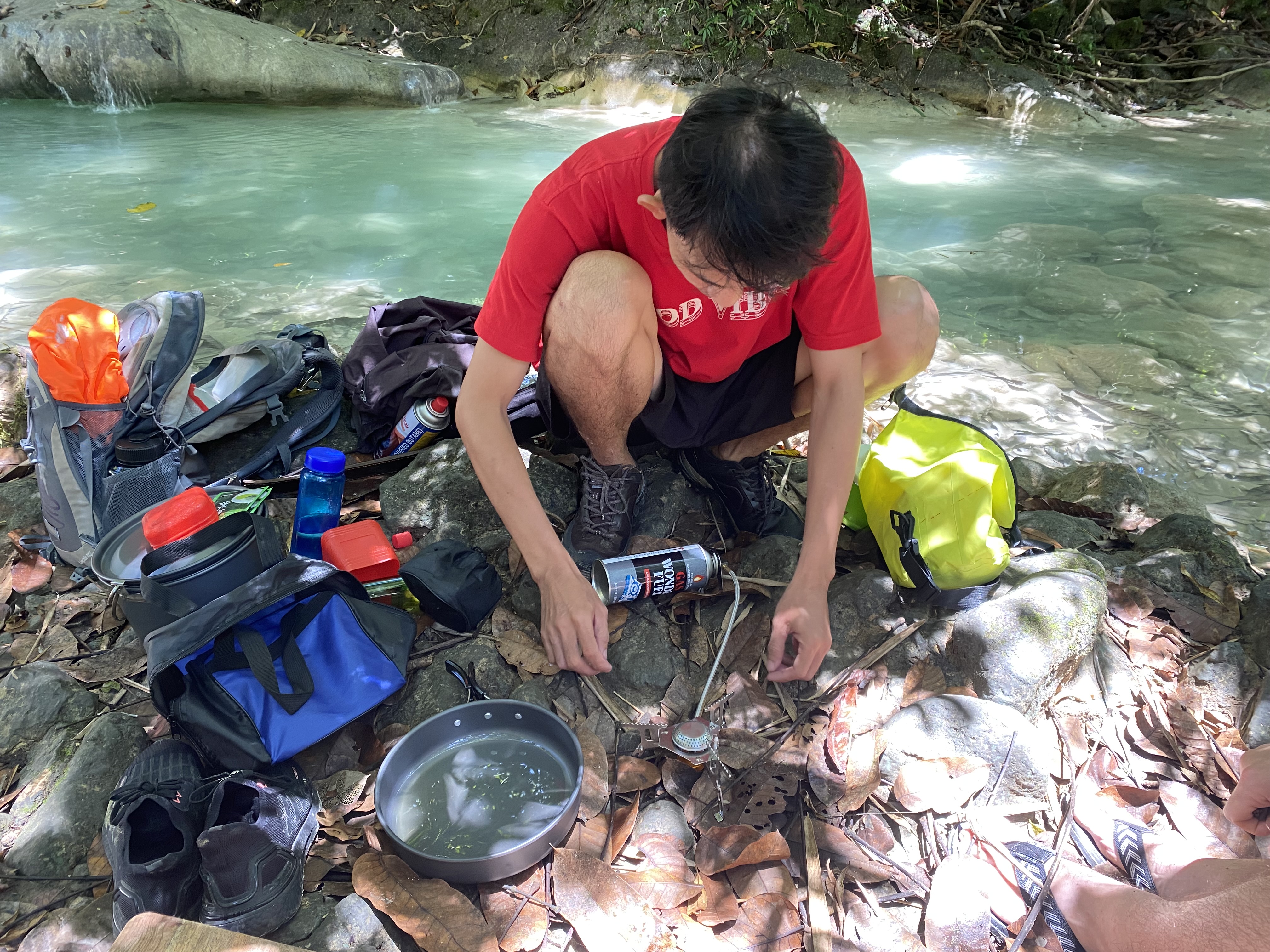 Avant de quitter Baubau, nous nous sommes arrêtés pour acheter du tempe ainsi que du riz et des légumes déjà cuisinés. Mario est bien organisé et comme explorer la nature est l’une de ses principales activités, il a tout le matériel dont nous avons besoin et même carrément bien plus : je n’avais pas remarqué mais le sac qu’il portait était quand même super lourd au vu de tout ce qu’il avait amené au cas où. C’est décidément vraiment un chic type.