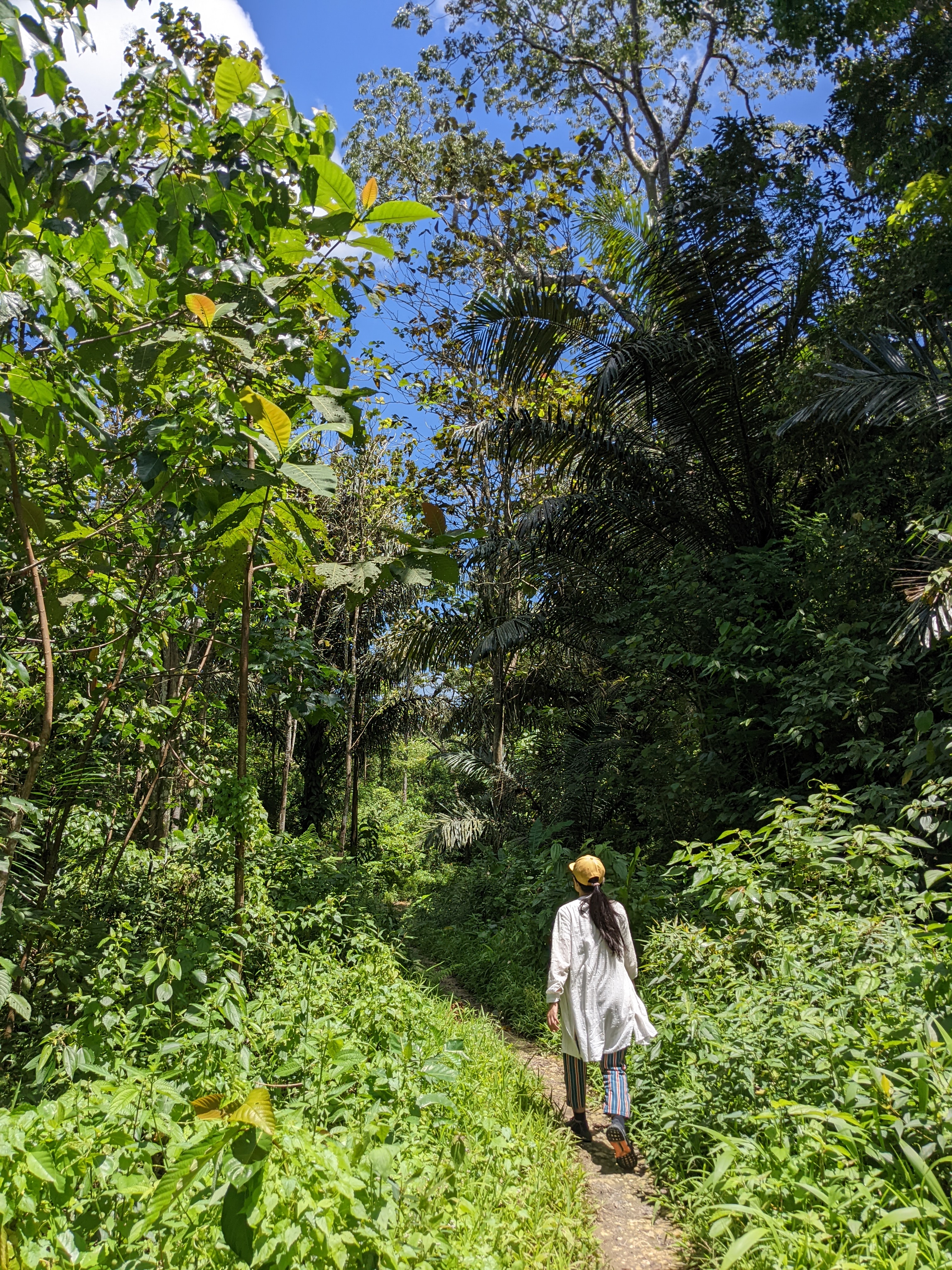 En effet, pour atteindre ce petit coin de paradis que je vais vous montrer, il aura fallu rouler pendant près de 45 minutes, puis emprunter une longue piste de terre avant de marcher un quart d’heure en s’enfonçant dans la jungle, pour enfin atteindre la première cascade dont nous a parlé Mario.