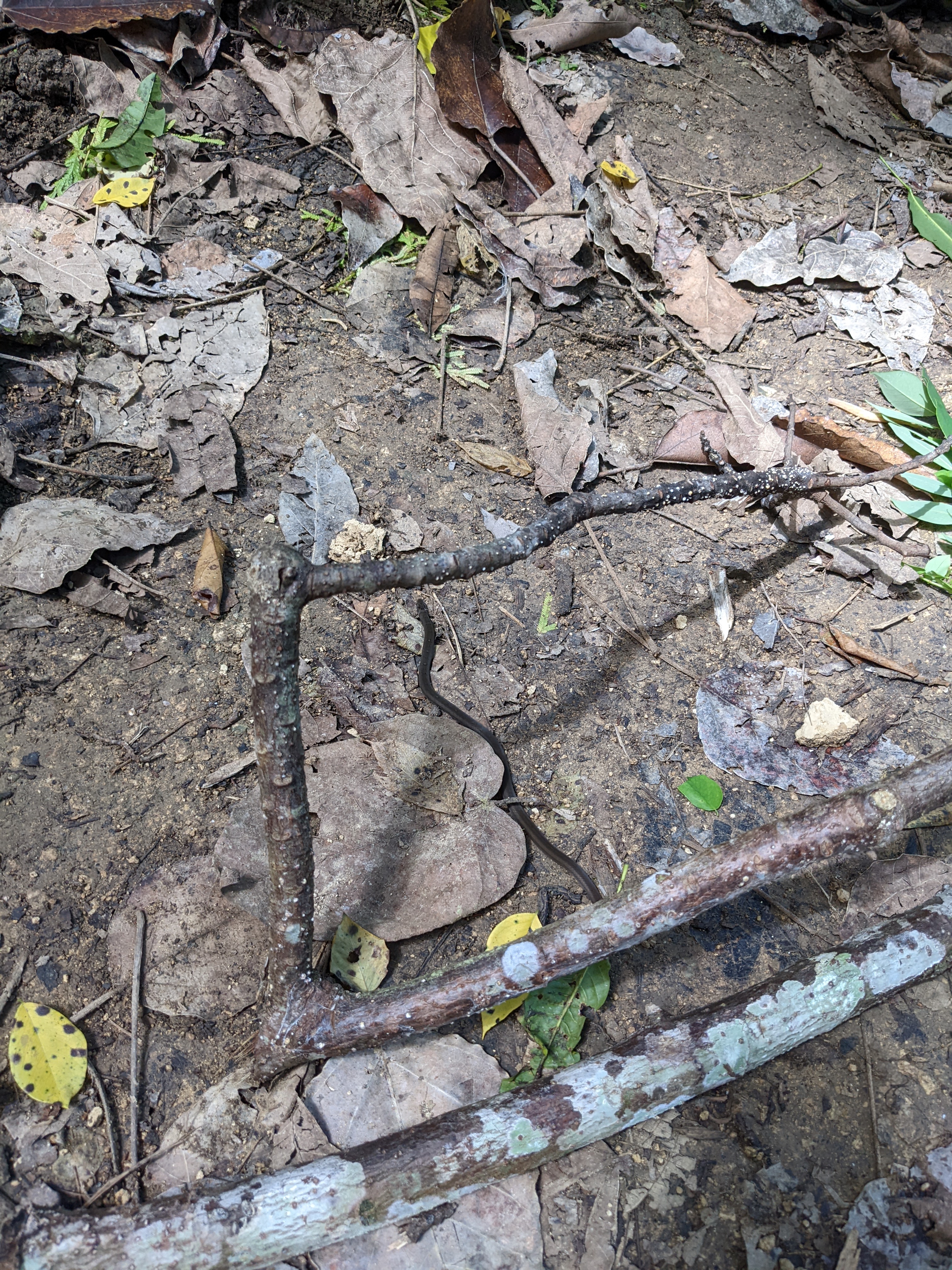 Toujours sur le thème de la faune, nous pouvons apercevoir un petit serpent noir, au gré de notre marche dans la jungle. Tant pis pour Giang qui tenait absolument à ouvrir la marche et ne pas se trouver en queue de file, elle aura raté ce furtif reptile.