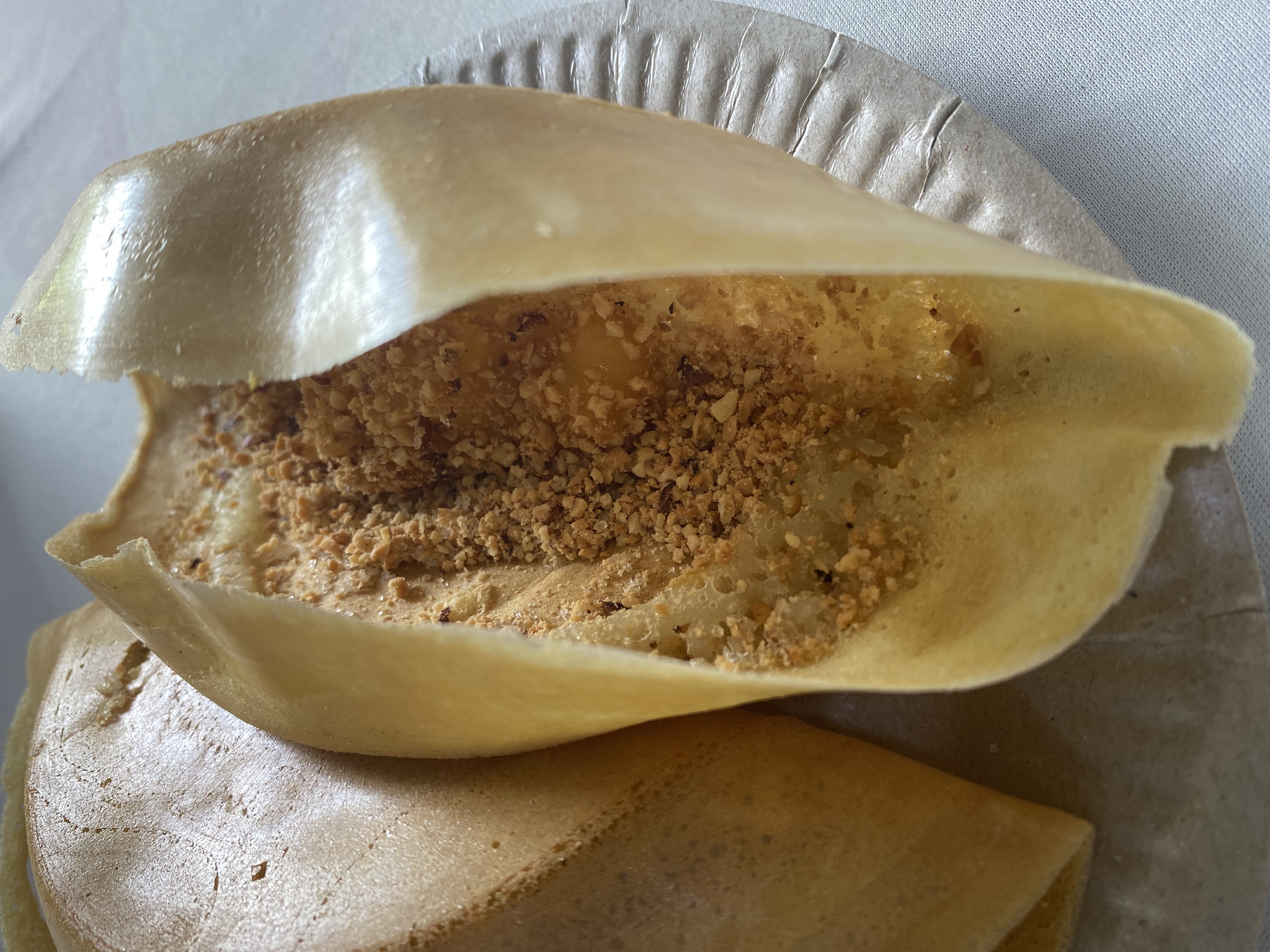 Après cela ils nous invitent à aller nous restaurer. Et là où c’était doublement sympa c’est qu’il y avait aussi des aliments sucrés dehors, notamment avec ce stand qui produisait cette délicieuse collation sucrée :