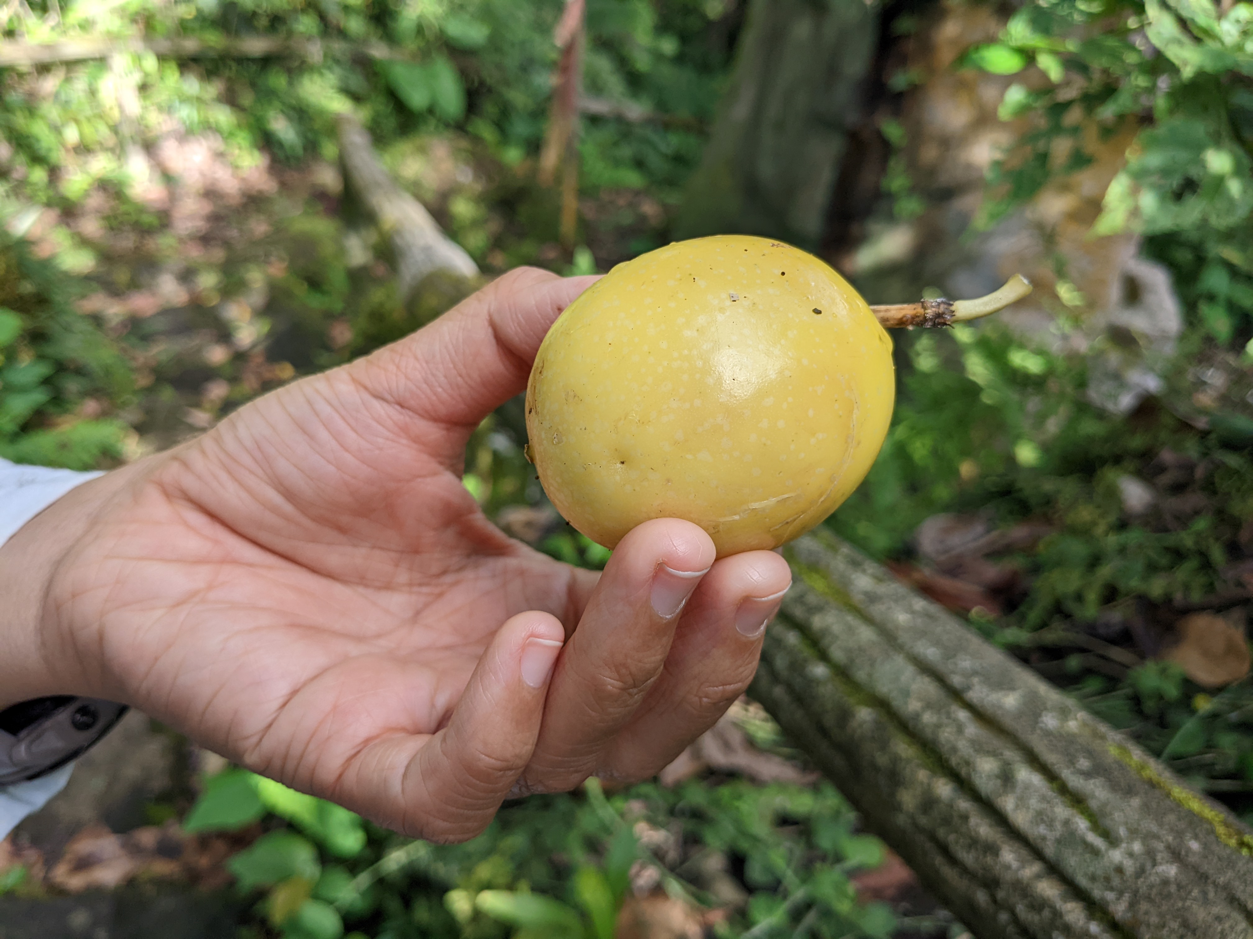 En redescendant le chemin de la tourelle d’observation nous trouvons un fruit de la passion : c’est toujours sympa de se trouver dans des pays aux fruits exotiques.