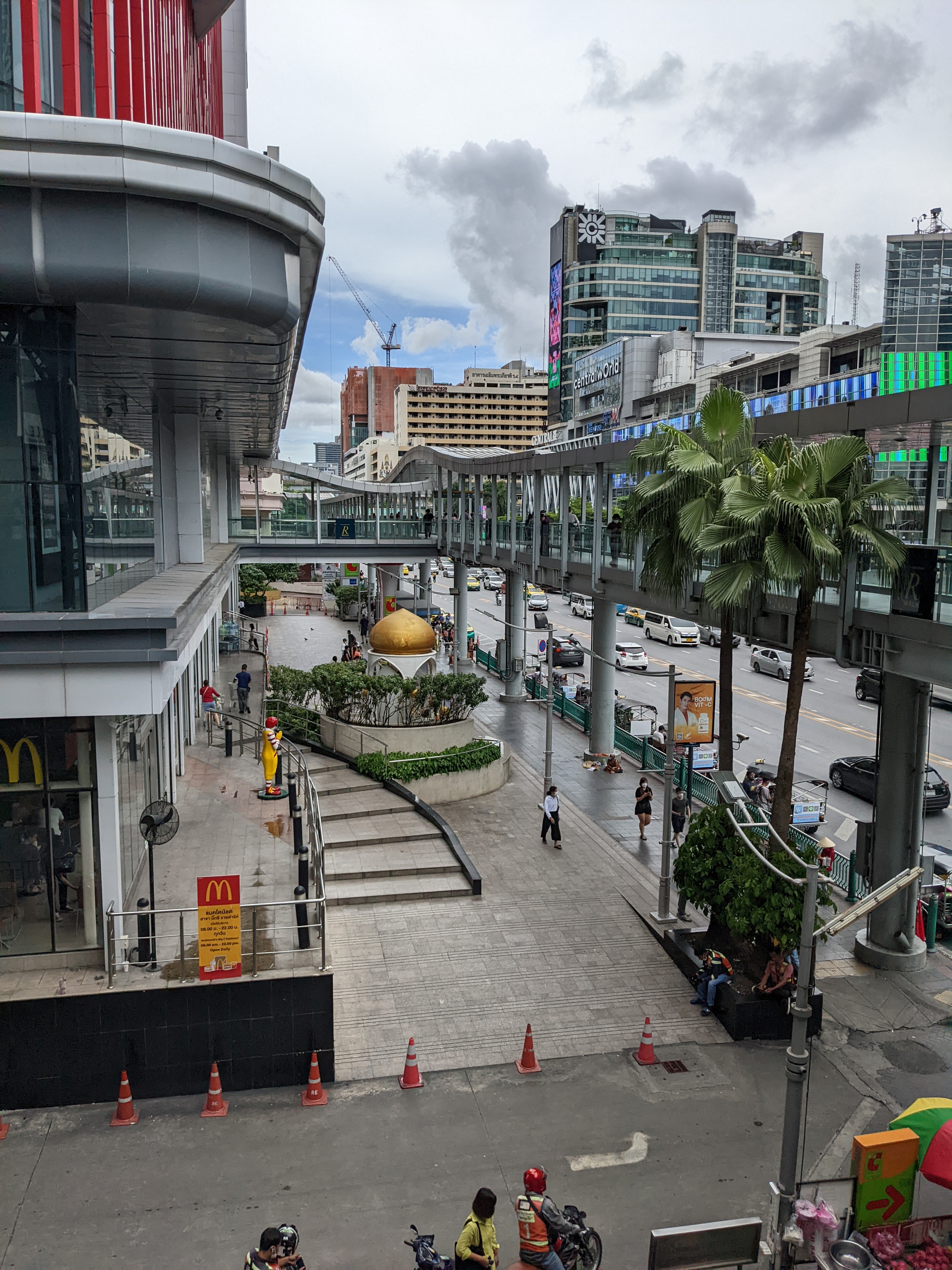 Moi qui aime marcher j’ai beaucoup apprécié le centre-ville de Bangkok. Les trottoirs y sont larges et propres. Les feux de circulation sont tous équipés d’une minuterie, ce qui permet aux automobislistes comme aux piétons de se tenir prêts sans stresser quand viendra leur tour. On trouve très souvent des passerelles pour traverser les larges routes. Un point très agréable c’est le R Walk, un chemin qui permet de se déplacer via un réseau de passerelles. Elles sont d’ailleurs les bienvenues car comme je l’ai dit, les routes sont plutôt larges et accueillent bien plus de voitures que de deux-roues, petit changement d’ambiance avec le Vietnam d’où j’arrivais.