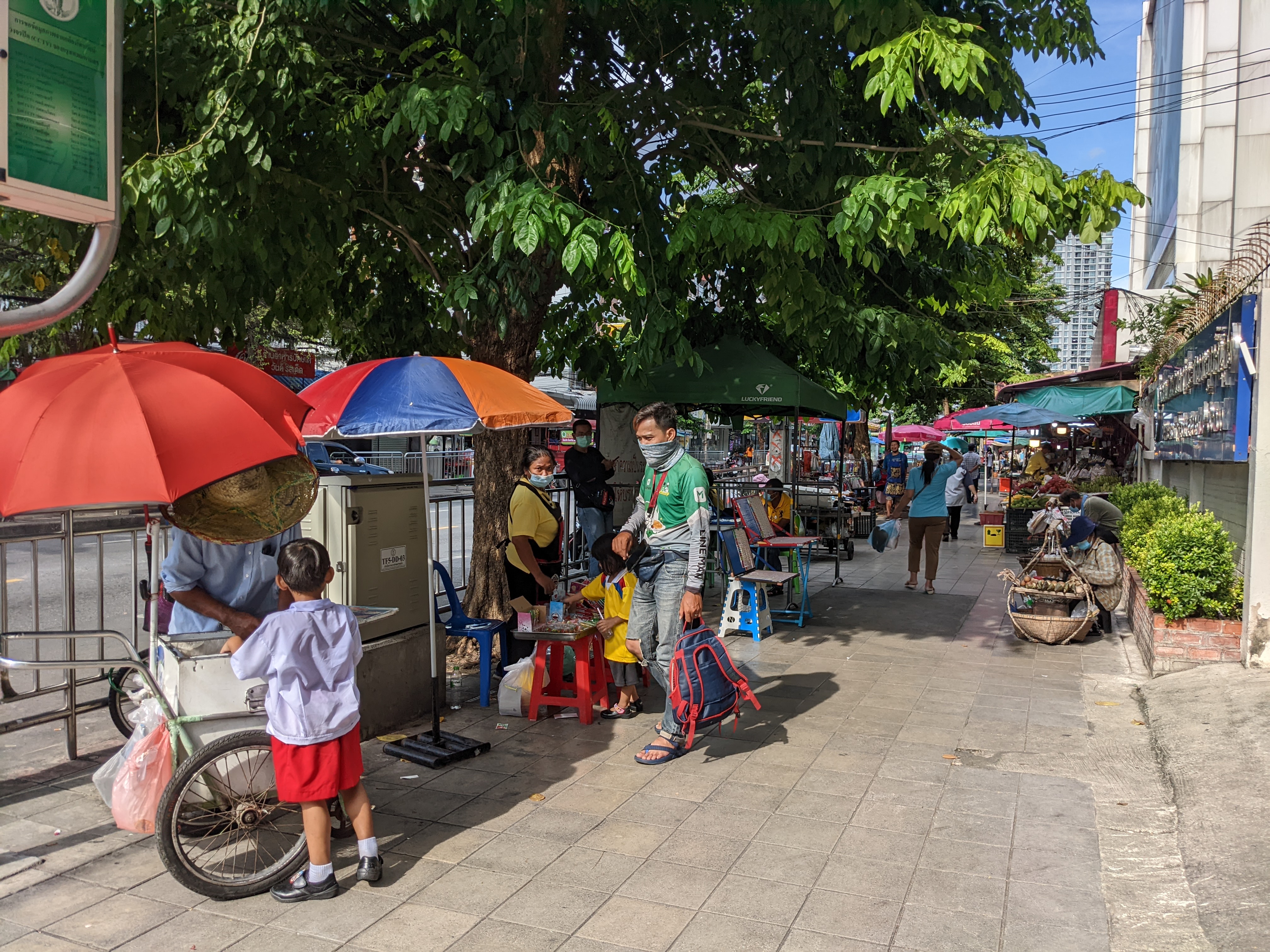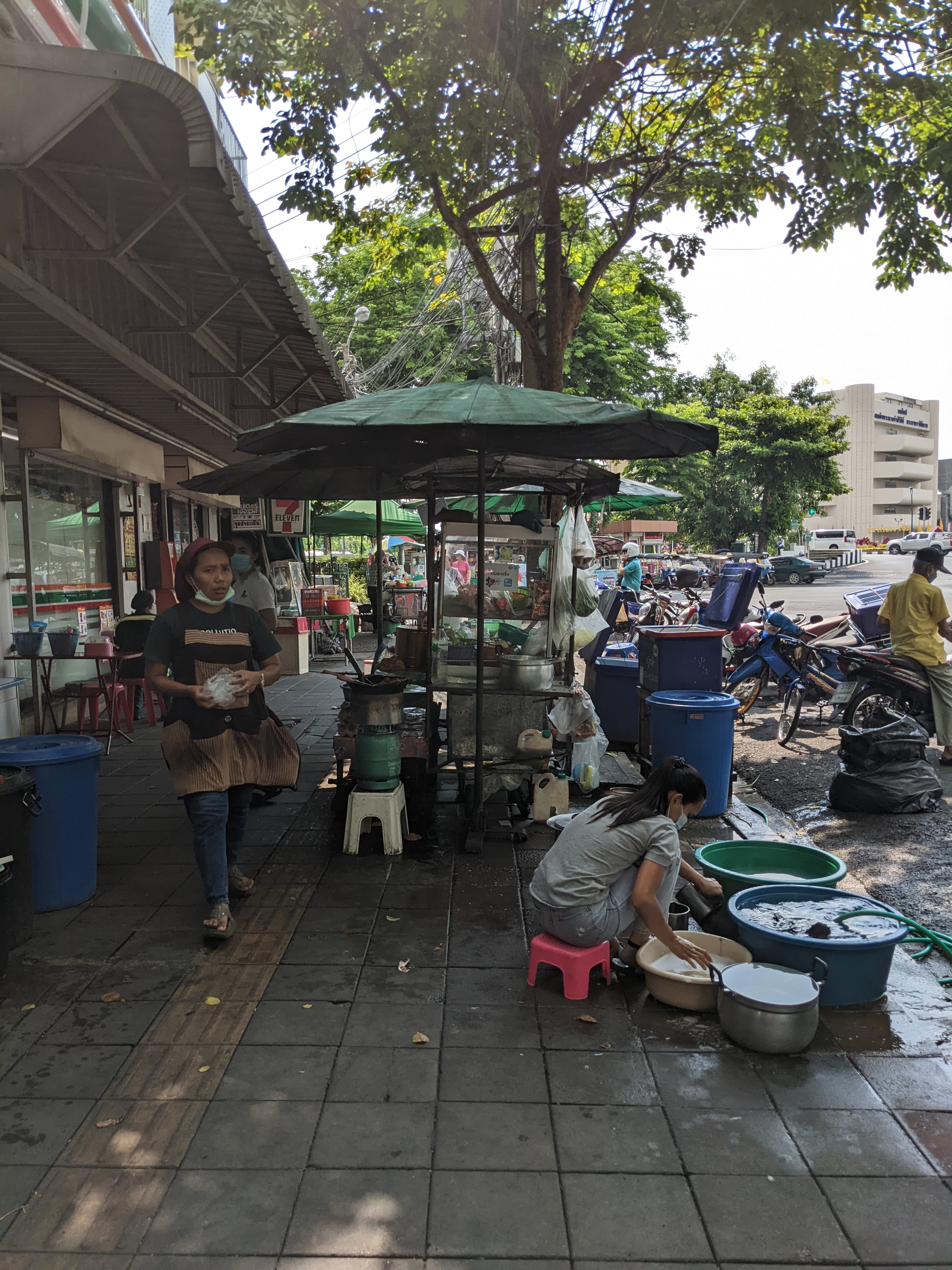 Les vendeurs de rue avaient l’air très populaires à Bangkok : j’ai pu observer que beaucoup de gens achetaient de quoi grignoter, surtout s’ils sont stratégiquement placés à la sortie des écoles.