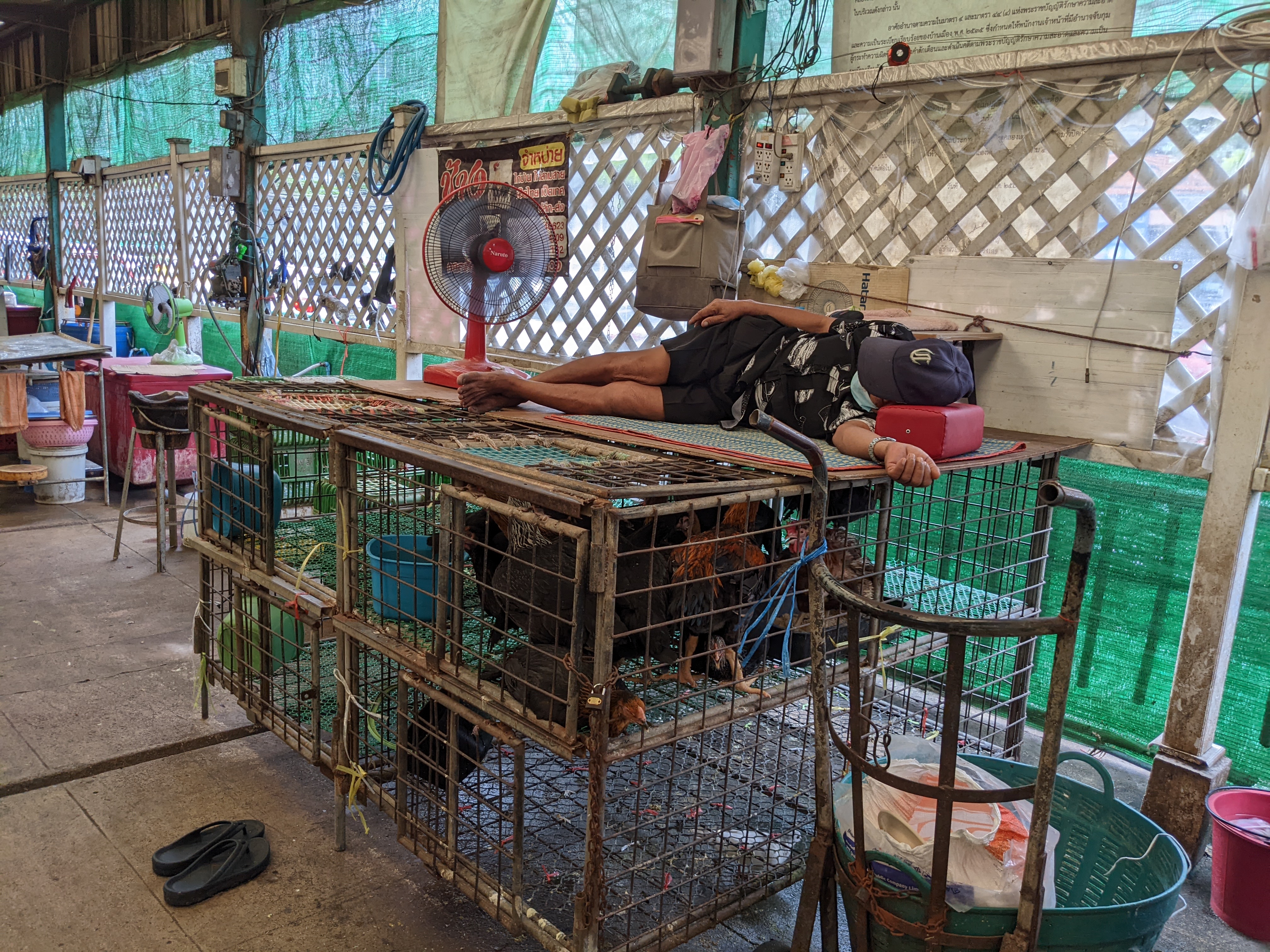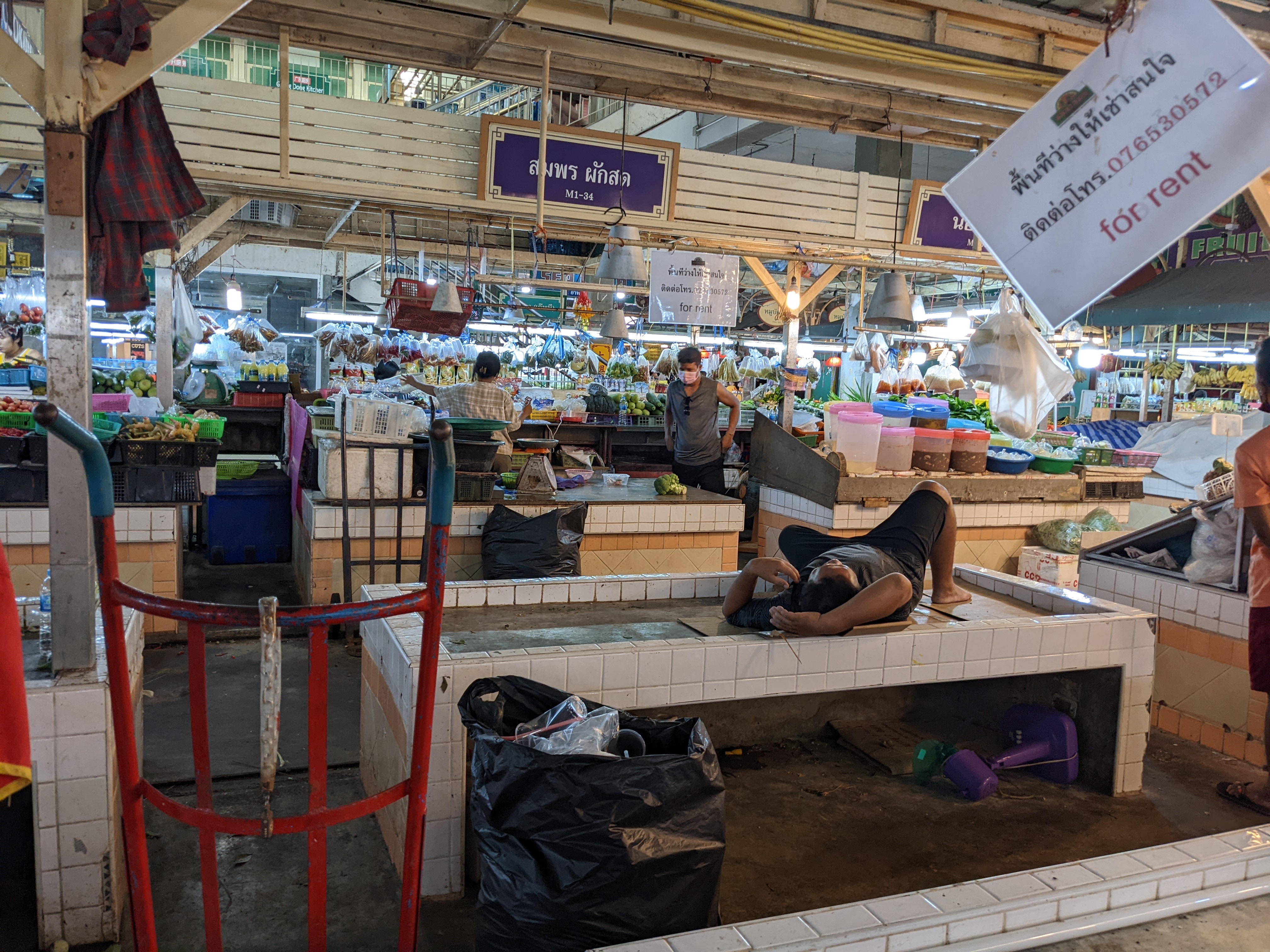 Mais un truc qui m’a fait beaucoup rire et que j’ai pu aussi observer plus tard en Indonésie, ce sont les personnes qui dorment dans un coin ou sur leurs étals !
