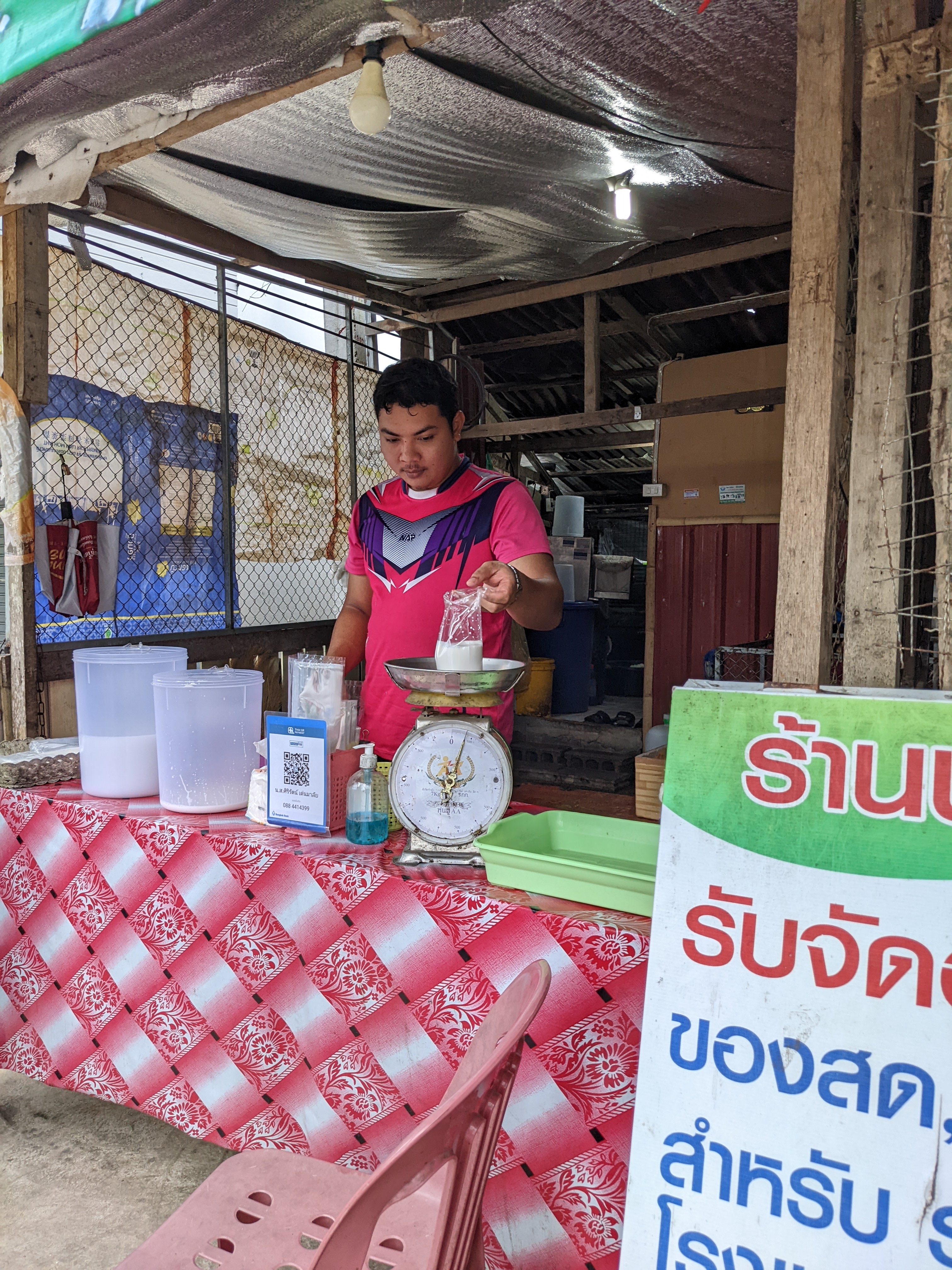 D’ailleurs en parlant d’emballage, la plupart des liquides vendus sont conditionnés dans des petits sacs plastiques. Eh oui, le plastique dans ce pays comme en Asie du Sud-Est, est omniprésent.
