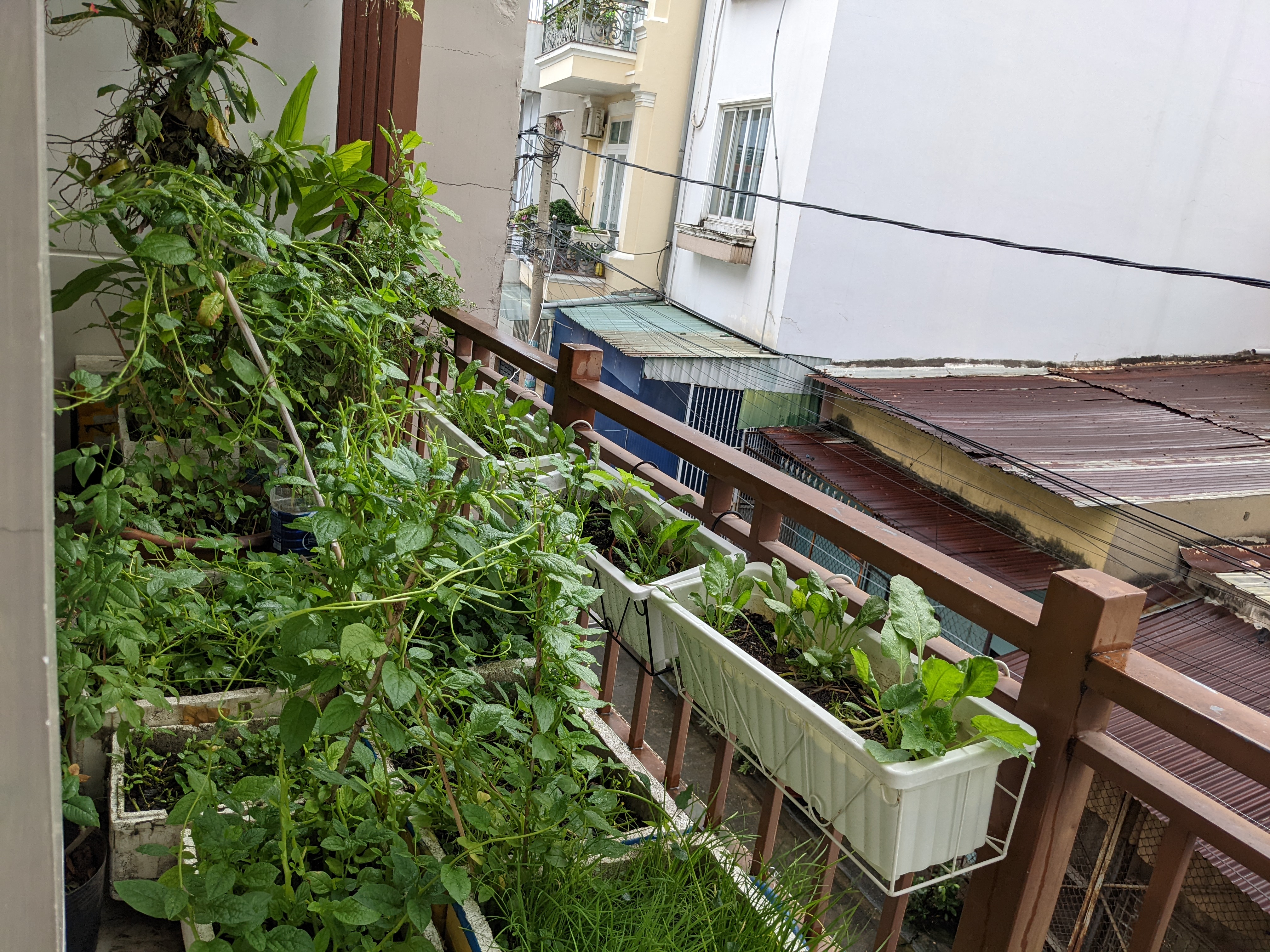 D’ailleurs les feuilles de vignes proviennent directement du jardin sur le balcon de la maison. Climat tropical oblige, toute une variété de plantes vertes est cultivée par la famille sur le balcon et dans la petite arrière-cour.