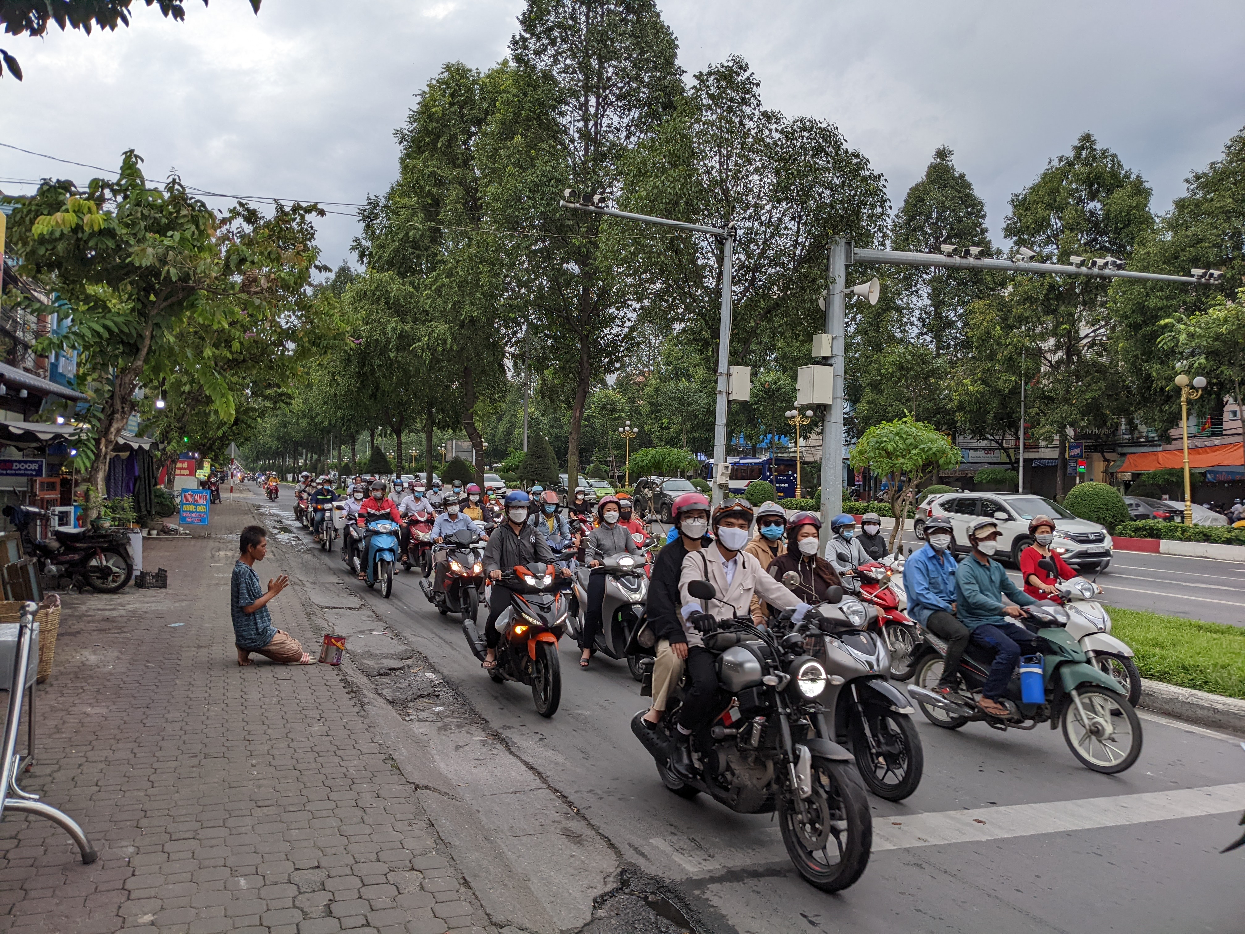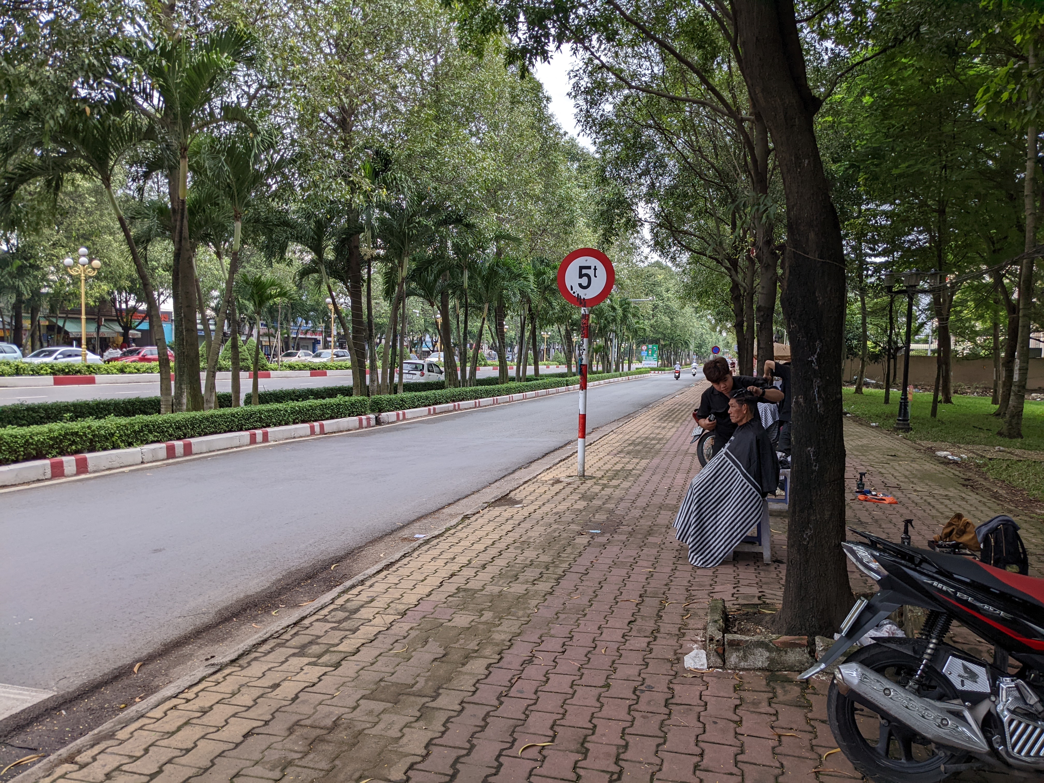Le truc que je n’aime pas trop avec les grandes villes vietnamiennes, c’est que ce n’est pas le plus agréable pour se promener en marchant. Il y a beaucoup de deux-roues (donc ça pue !), et les trottoirs sont souvent en piteux état. On me dit alors qu’il y a un grand parc juste à côté de la maison. De quoi ? Ah non, fausse alerte, je n’ai pas le droit d’y rentrer : je suis étranger et c’est un terrain militaire. Les Vietnamiens eux-mêmes doivent y laisser leur carte d’identité s’ils y rentrent.