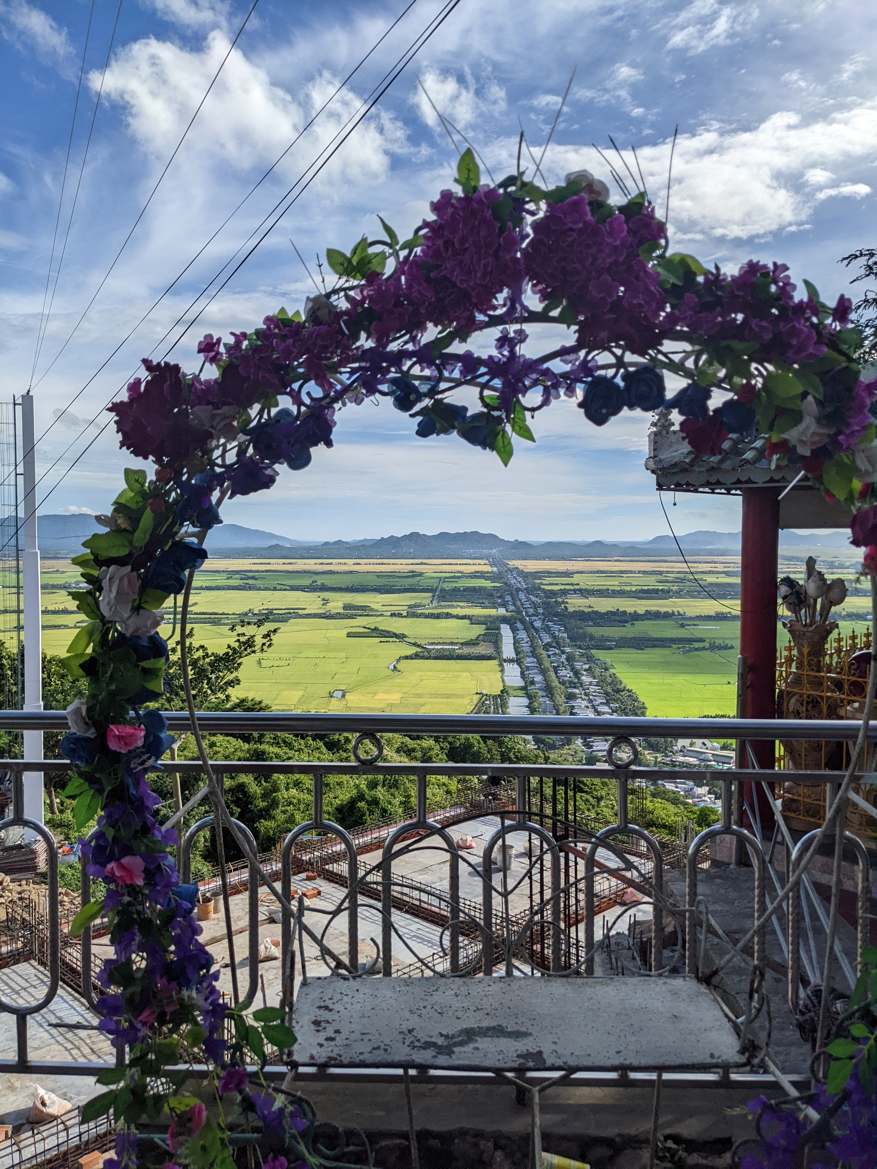 Avant d’aller plus loin, petit point pour souligner que c’est quand même toujours drôle de louer des deux-roues au Vietnam. Par exemple, quand on est rentré à l’hôtel pour le midi, le second fils des propriétaires de l’hôtel s’est dirigé vers mon scooter pour prendre le casque que j’utilisais en me précisant : « mon casque ». Eh oui, si jamais l’équipement que l’on prête n’est pas suffisamment bien pour les standards du client, les Vietnamiens n’hésitent jamais à prêter leurs propres affaires, le pays du service a frappé une fois encore.
