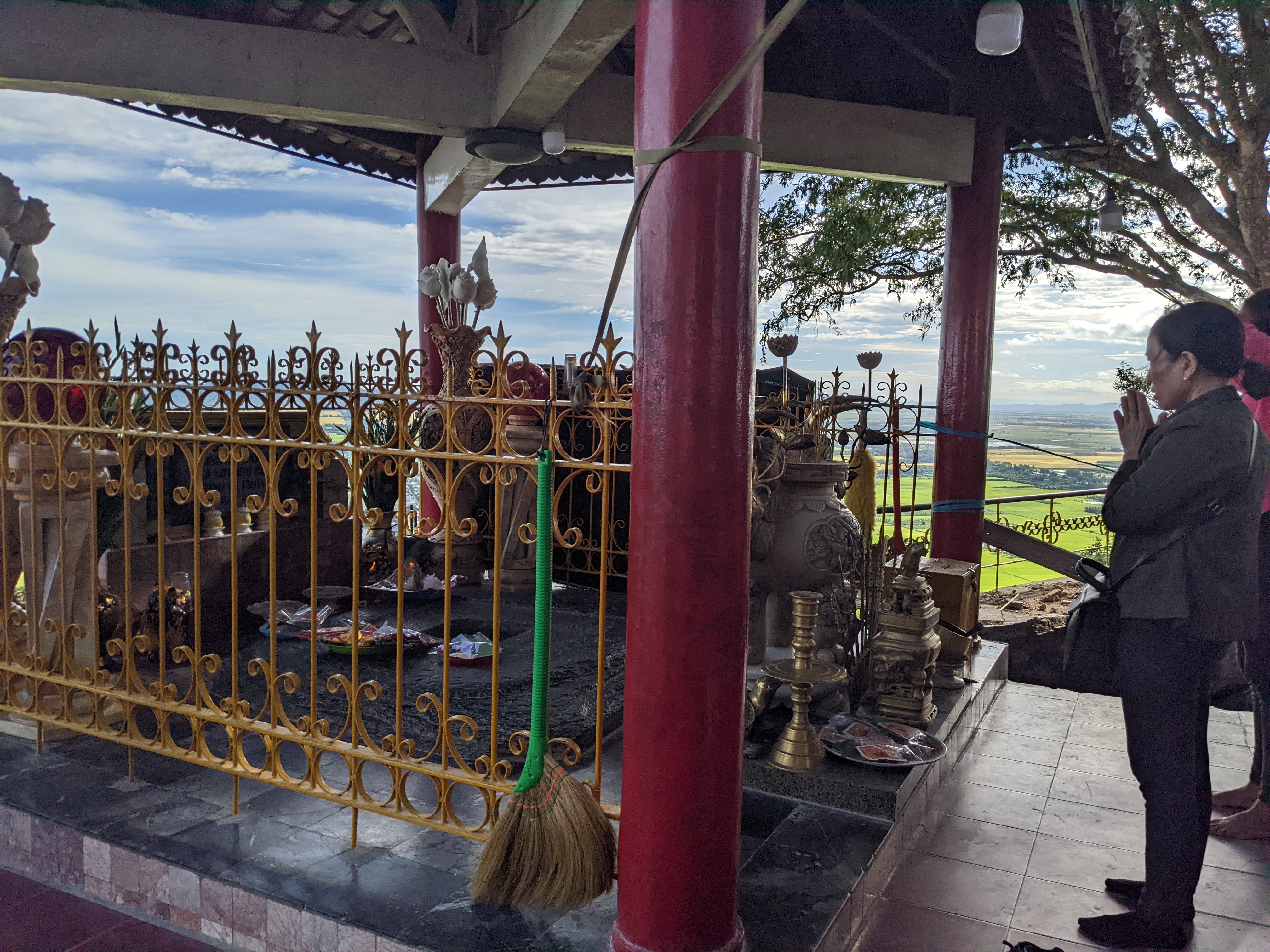 Comme tous les trucs du genre, au sommet se trouve une sorte de temple qui me semble très faux et pas du tout authentique. C’est d’ailleurs le cas : je dirais que cela a été construit il n’y a pas plus de vingt ans. Il y a même un café avec de la musique forte diffusée à l’extérieur, y’a mieux comme sanctuaire. Le temps d’admirer un peu la vue, avant de nous rendre tout au sommet où se trouve un petit autel.