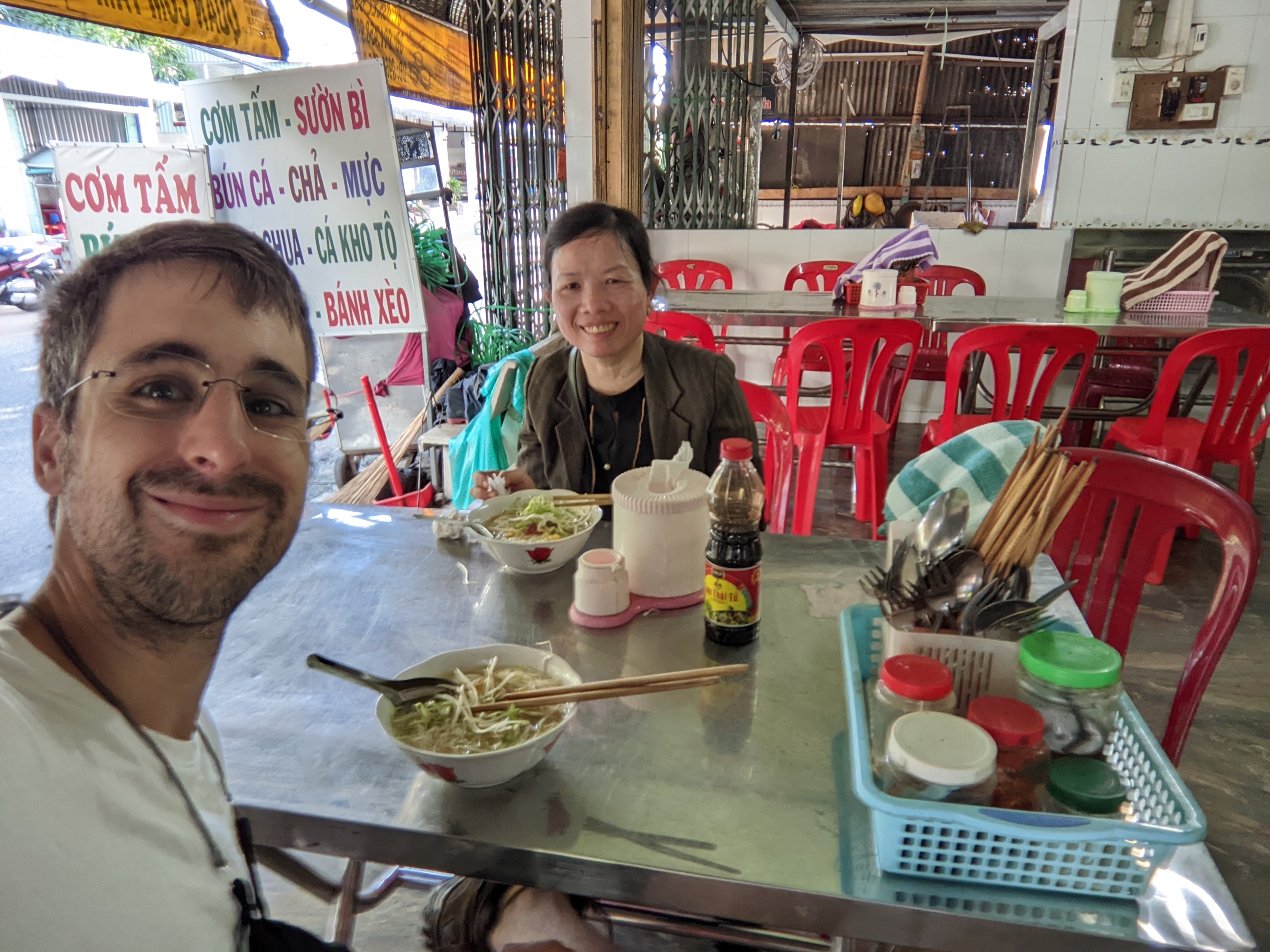 - Hormis sa prononciation (parce que c’est une langue tonique), le vietnamien est une langue très facile à apprendre où beaucoup de choses sont bien plus simples que la nôtre : pas de conjugaison, seulement quatre temps différents, le mot pour pour poser une question est le même que pour exprimer la négation mais placé à un autre endroit, etc. De surcroit, “cadeau” de l’occupation française, ils utilisent l’alphabet latin que les français ont un peu customisé pour indiquer quelle prononciation utiliser. J’ai commencé à l’apprendre et on me dit que j’ai un bon accent, ça fait plaisir.