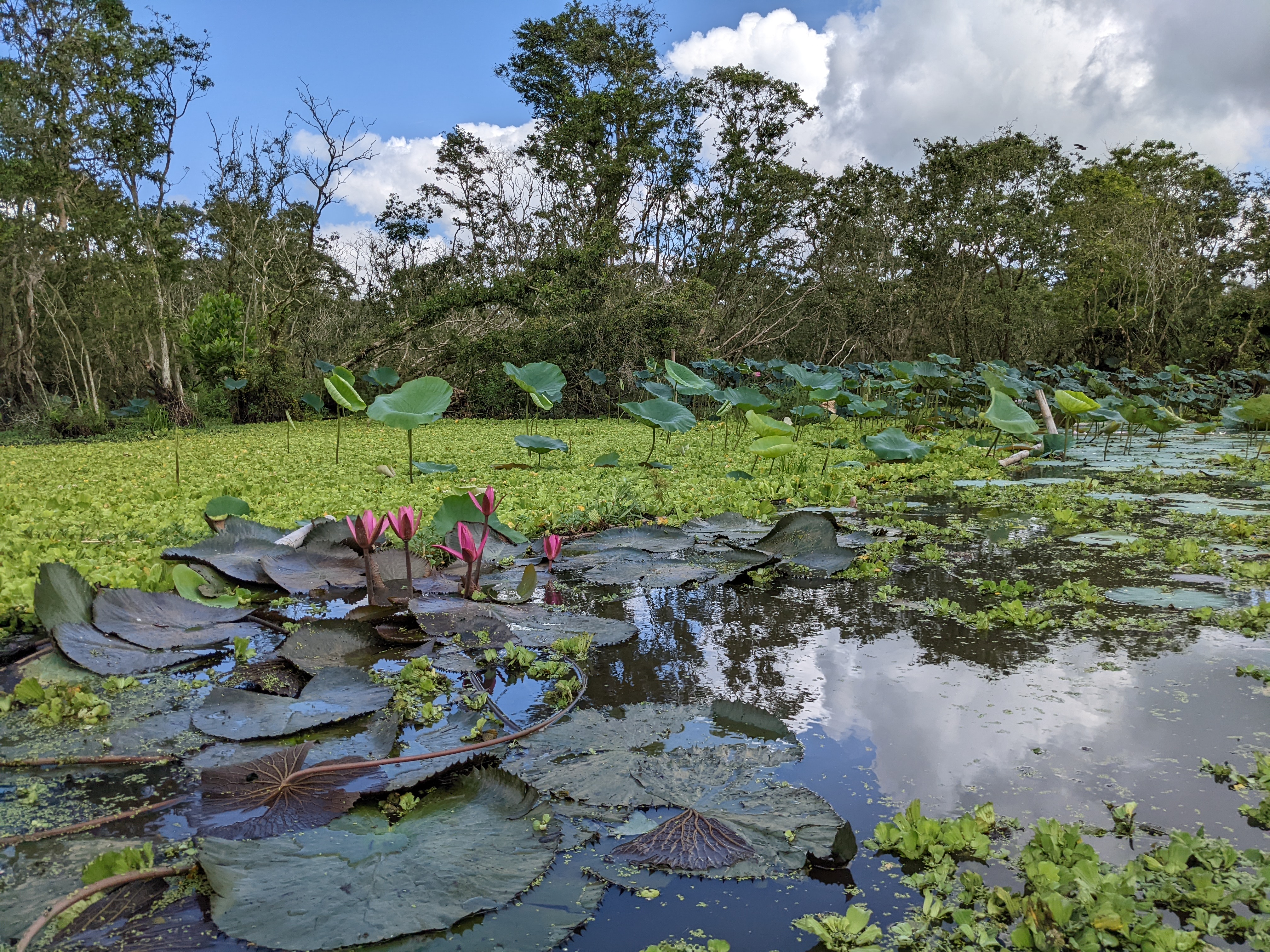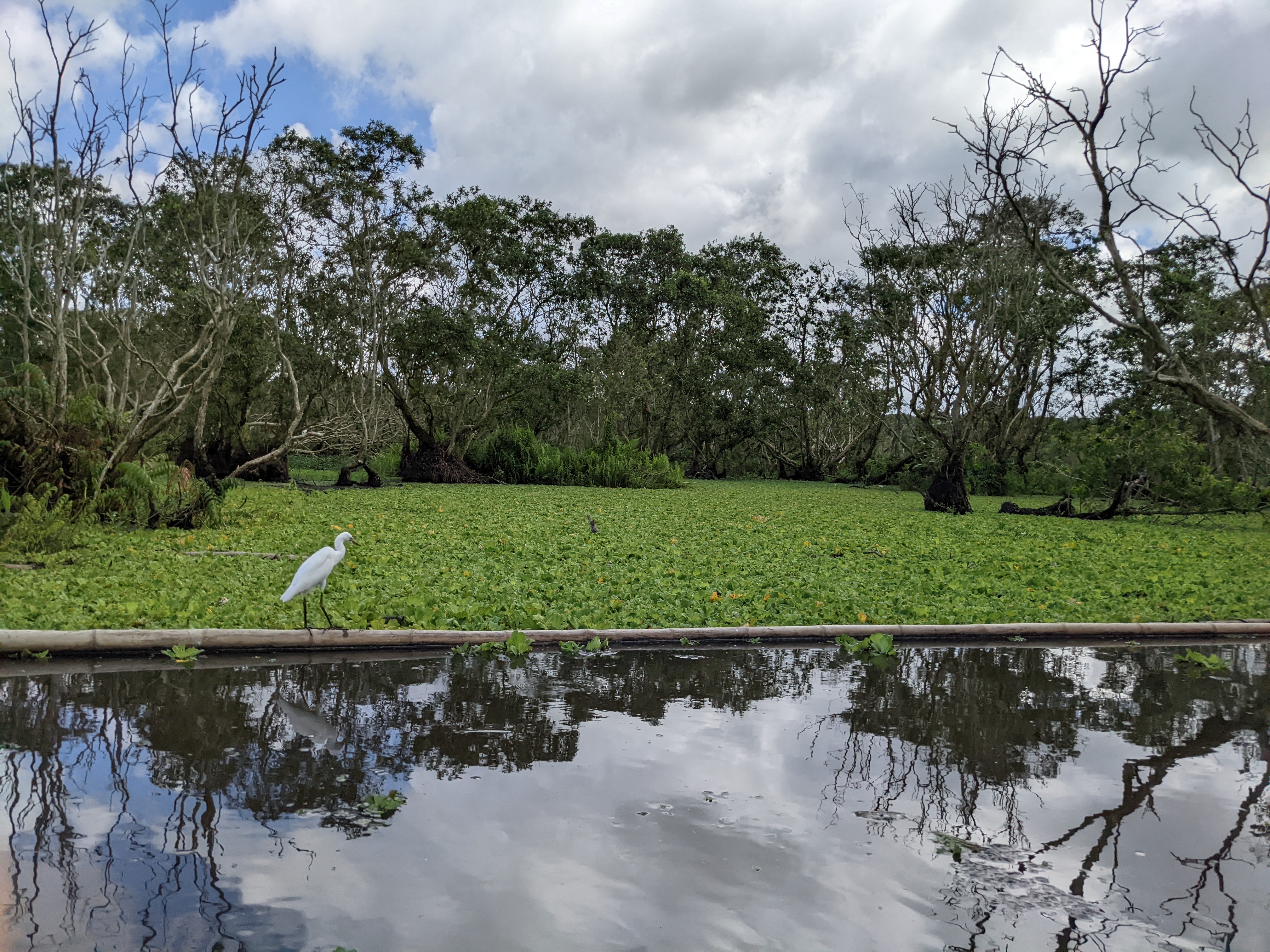 La visite de la forêt se fait en bateau à rames et à moteur. On continue donc de prendre le bateau pour la troisième journée d’affilée, on va pas clairement pas s’arrêter en si bon chemin. D’ailleurs c’est marrant qu’on appelle ça une forêt parce qu’en l’occurence moi ça me fait plutôt penser à un marais.
